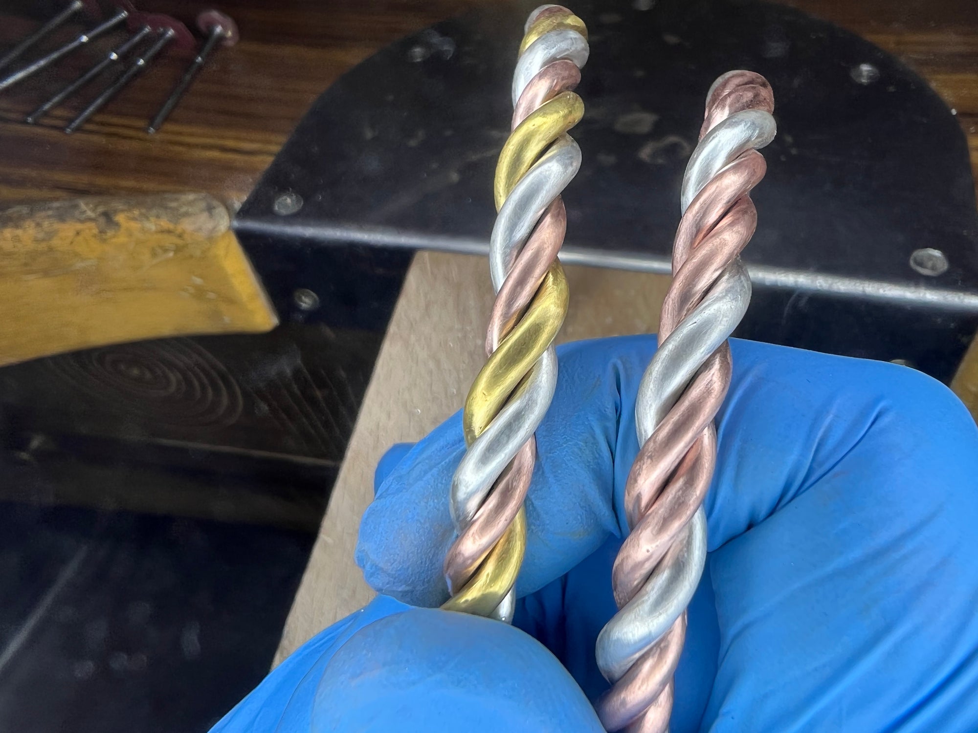 Extremidades onde os metais se unem em forma de serpente enrolada, evocando a forma da kundalini shakti